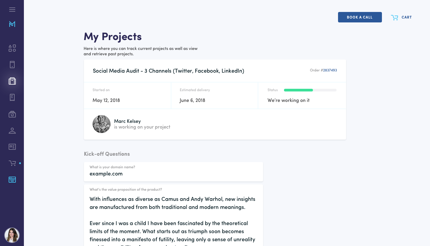 Answer some initial kick off questions and your project begins!